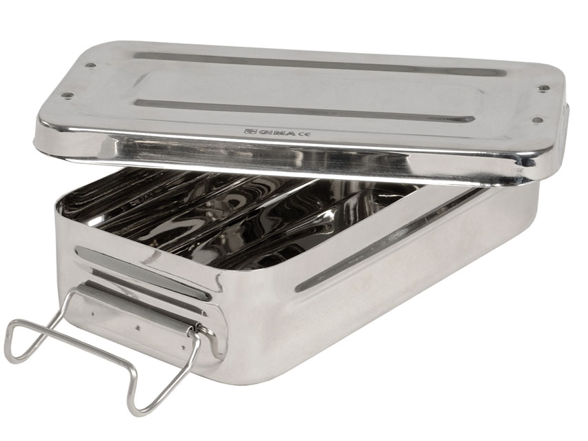 Nerūsējošā tērauda kastīte ir aprīkota ar rokturiem vieglai un drošai tās noslēgšanai. Ar rokturiem - autoklavējama pie 125C. Bez rokturiem - autoklavējama pie 100C.