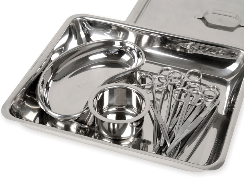 Šuvju komplekts, 12 gab. Komplekta saturs. Nieres trauciņš 20 cm (8) - vidējs. Gallipot 150 ml - 6 unces - vidējs. Mayo Hegar adatas turētājs - 18 cm. Kocher artērijas knaibles - taisnas - 16 cm. Kocher artērijas knaibles - izliektas - 16 cm. Pārsienamās knaibles (Īkšķis) - 16 cm. Angļu TOE preparēšanas knaibles - vienkāršas - 14 cm. Šķēres ar zobiem 1x2 - 14 cm. Šuvju šķēres - Heaths ligatūra - 15 cm. Mayo šķēres - taisnas - 15 cm. Sūklis turēšanas knaibles - str. - 18 cm. Instrumentu paliktnis ar vāku 30 x 20 x 5 cm.