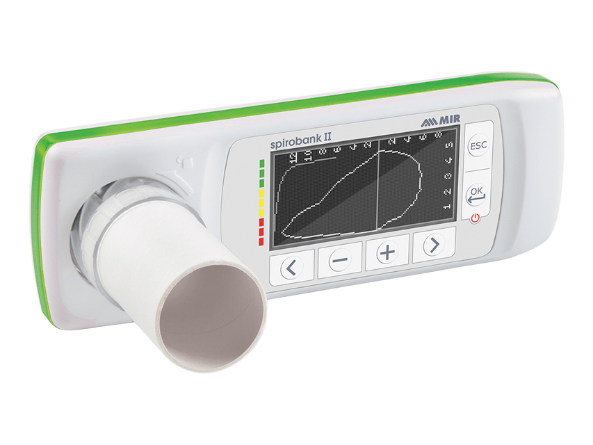 SPIROBANK II BASIC + WINSPIROPRO programmatūra. Pilnīgs un ātrs kabatas spirometrs ģimenes ārstam spirometrijas testu veikšanai jebkurā. Kalibrēšana nav nepieciešama. Izmantojiet vienreizēju turbīnu FlowMIR ar integrētu iemuti (33507) vai atkārtoti lietojamu turbīnu (33526). Mēra svarīgākos spirometriskos parametrus, tostarp: FVC, VC, IVC, IC, ERV, FEV1, FEV1%, PEF, FEF 25-75, FET, EVOL, TEST POST BD. Luksofori tūlītējai testa interpretācijai. Atmiņa līdz 10 000 testiem. Uzlādējams, ilgtermiņa kalpošanas laiks (40 stundu nepārtraukta darbība). Reāllaika testi, izmantojot USB. Atlasāma displeja valoda un kompaktdiska rokasgrāmata (GB, IT, ES, FR, DE, PT). Komplektā: Winspiro PRO programmatūra, USB kabelis, 1 vienreiz lietojama turbīna, pārvadāšanas soma. WinspiroPRO programmatūras funkcijas: (Datora sistēmas prasības: XP, Seven, Vista, 8, 10). Valodas: GB, FR, IT, DE, ES, PT, PL, SE, NL, LV, CZ, TR, RU, CN, JP. Tiešsaistes datora savienojums ar ikonu saskarni. Reālā laika plūsmas / apjoma un apjoma / laika līknes. Bronhu izaicinājums ar FEV1 reakciju uz devu. Bērnu stimulējošas animācijas. Integrācija ar EPR sistēmām. Plaušu vecuma noteikšana. Datus un grafikus eksportē arī pa e-pastu. Sistēmas prasības: Microsoft Windows Vista, 2000, XP, ME, Seven, 8, 10. Svars 140 g, ieskaitot akumulatoru. Izmērs 55 x 160 x 25 mm. Tehniskās specifikācijas. Barošanas avots: 3,7 V, 110 mA litija akumulators, USB uzlādējams. Tastatūra: 6 taustiņu membrānas tastatūra. Displejs: LCD vienkrāsains 160x80 pikseļi. Plūsmas diapazons: + 16 l / s. Plūsmas precizitāte: ± 5% vai 200 ml / s, izvēloties lielāko. Maksimālais tilpums: 10 l. Tilpuma precizitāte: ± 3% vai 50 ml, izvēloties lielāko. Datu pārraide: USB 2.0. Ražots Itālijā.