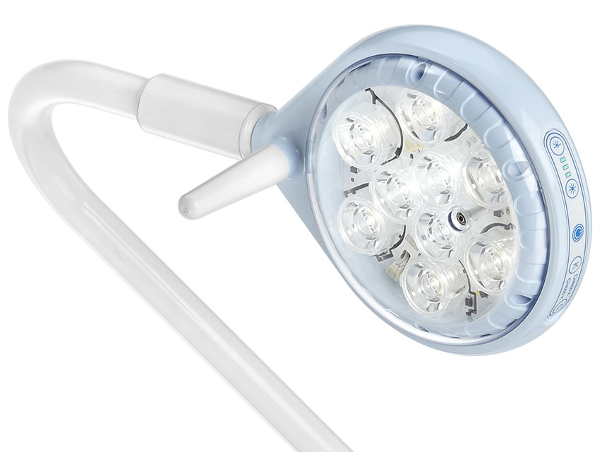 SATURNO ir bezēnu tipa lampa, kas piemērota mazai ķirurģijai, ginekoloģijai un izmeklēšanai. Pieejamas trīs versijas: mobilais ar ritentiņiem, sienas un griesti.- Gaismas starus ģenerē 9 gaismas diodes - katra 2,5 W- Siltums tiek izkliedēts caur alumīnija pārsega reflektoru.- 2 dažādu baltās gaismas temperatūru izvēle: 4000 °K un 4500 °K- Gaismas intensitāte regulējama 6 dažādos līmeņos, izmantojot priekšējo digitālo paneli- Gaismas intensitāte 50000 luksi pie 1 m. Apgaismotā lauka diametrs 28 cm- a Regulējams berzes gultnis ir uzstādīts uz katras lampas šarnīrsavienojuma- Pateicoties optiskajai koncepcijai, nav jāpielāgo fokussTehniskās specifikācijas• Gaismas intensitāte 1 m attālumā: 50 000 luksi• Krāsu temperatūra regulējama: 4000/5000 ± 5% °K• 9 gaismas diodes: 2,5 W• Vidējais LED kalpošanas laiks: 50 000 h• CRI (hromatiskās renderēšanas indekss): 95 Ra• Apgaismojuma diametrs lauks: Ø 28 cm• Apgaismojuma dziļums IEC 60601-2-41 (L1+L2) pie 60% no Ec: 124 cm• Kopējā izstarotā enerģija Ec: 163 W/m2• Atstarotāja diametrs: 19,5 cm• Noderīga apgaismojuma virsma no kupola: 65 cm2• Svars (griesti, mobilais, sienas): 12 - 20 - 11 kg• Jaudas prasības: 100-240V, 50-60 Hz• Minimālais telpas augstums (griestu versija): 244 cm• Standarti: IEC 60601-1 IEC 60601-2-41, MDD 93/42 CEE, 2007/47/CE I klases medicīnas ierīce