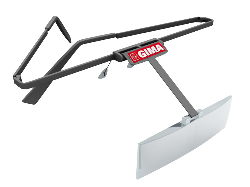 Briļļu rāmis ar palielināmiem stikliem. Noderīgs ārstam, kad nepieciešams palielināts redzamā laukuma skats un iespēja izmantot abas rokas. Viegls. Tas salokās uz augšu un to var vilkt pāri brillēm. 2,5X tālummaiņas objektīvs, ko var noliekt, lai panāktu optimālu fokusu.