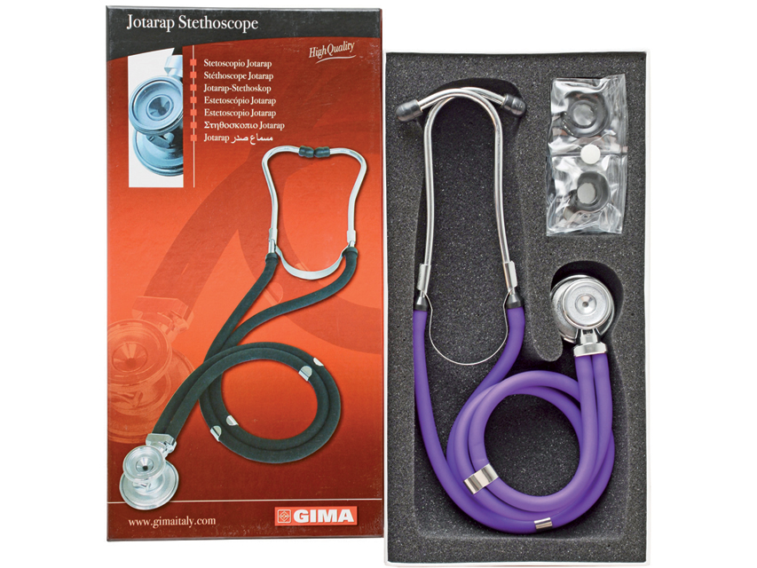 Rappaport tipa divpusējs fonendoskops Jotarap.Mazā diafragma: Ø 25 mm.Lielā diafragma: Ø 37 mm.Galva ar klikšķi nofiksējas pozīcijā ar katru 180° pagriezienu.