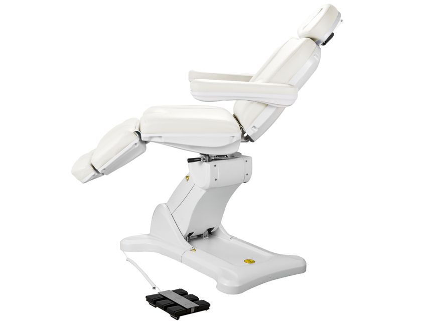 NEFERTITI elektriskais krēsls.3 motori.Balts.Elektriskais krēsls ar ļoti stabilu konstrukciju un augstu komfortu.Īpaši izstrādāts, lai optimizētu darba telpu, pateicoties 240° rotācijai.3 motori kontrolē augstumu, atzveltni un sēdekļa slīpumu ar kājas slēdzi vai spiedpogu paneli.Kāju balsts regulējams ar gāzes pacelšanas sūkni, grozāmām rokām un regulējamu galvas balstu.Darbības jauda: 220-240 V - 50/60 Hz.Manuāli: GB, FR, IT, ES.Izmērs: 186x86xh 58-88 cm.Neto svars: 79 kg.Maksimālā slodze: 175 kg.Augstuma regulēšana: 58-100 cm.