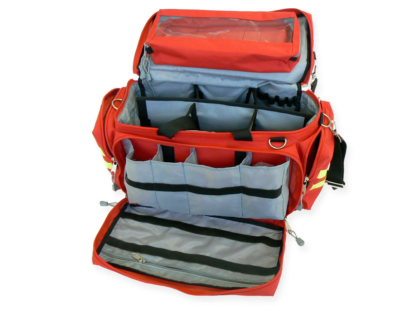 Profesionālas, īpaši ietilpīgas somas ar iekšējiem regulējamiem nodalījumiem, kas ļauj personalizēti organizēt telpu. Nodrošinātas ar ārējām kabatām, iekšējiem nodalījumiem un vienu noņemamu maisiņu ar caurspīdīgu logu. Somas ārpuse ir izgatavota no izturīga, ūdensizturīga 600D poliestera ar PVC pārklājumu. Visu somu iekšpuse ir izgatavota no 600D poliestera ar PVC pārklājumu. Aprīkotas ar dubultām dzeltenām atstarojošām sloksnēm. Iekšējā odere ir noņemama vieglai tīrīšanai. Ūdensizturīgs gumijas dibens novērš ūdens iekļūšanu. • Materiāls: poliestera PVC pārklājums. • Modelis: vidējs. • Krāsa: sarkana. • Izmērs: 55 x 35 x h 32 cm. • Iekšējās moduļu telpas: 6. • Ārējās kabatas: 4.