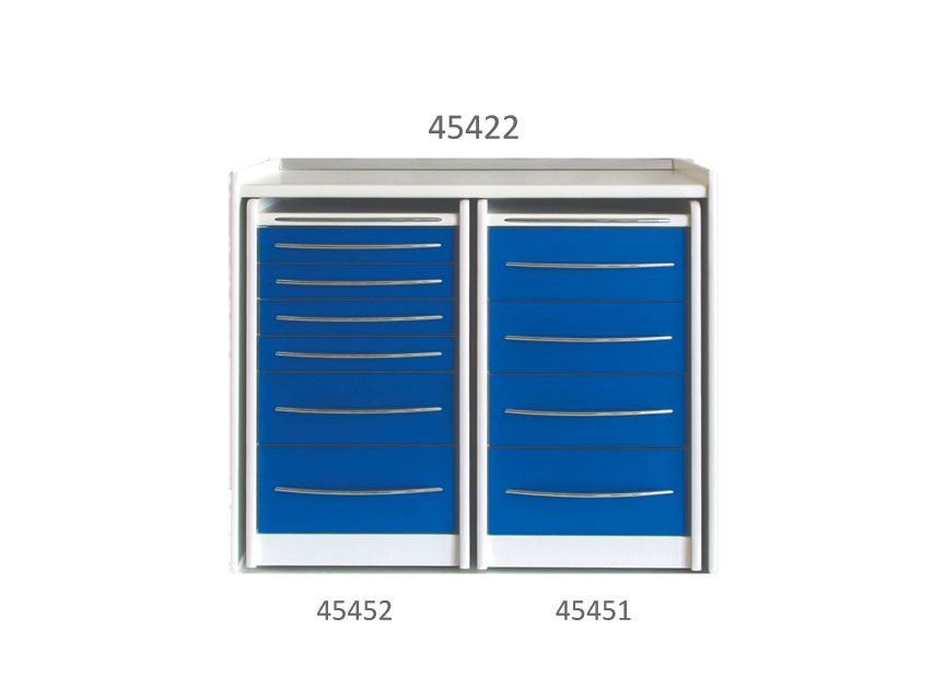 MOBILE UNITS Model: 6 drawersAvailable in 45 days, please specify colour with orderMobile space is a programme of safe and ergonomic technical furniture for medical, physiotherapy and professional beauty use. These units feature wheels and offer the same levels of functionality as trolleys. The visible edges are radiating and covered in shockproof material. The steel handles provide good grip without dangerous edges. Stability is optimised by the inner and outer sides, the extra-thick backs and invisible wheel positioning. The steel runners of the drawers with rocker arm closing ensure smooth opening while preventing undesired opening during transport. The independent worktop makes it possible to fully pull out the units for easier floor cleaning and position the trolleys according to need. It is available with or without washbasin (left or right). The broad choice of unit configurations and colour range make it possible to personalise interiors according to individual requirements. Covered in shock-proof material. Easy removal by front pull handle. Invisible wheels.Made in Italy.