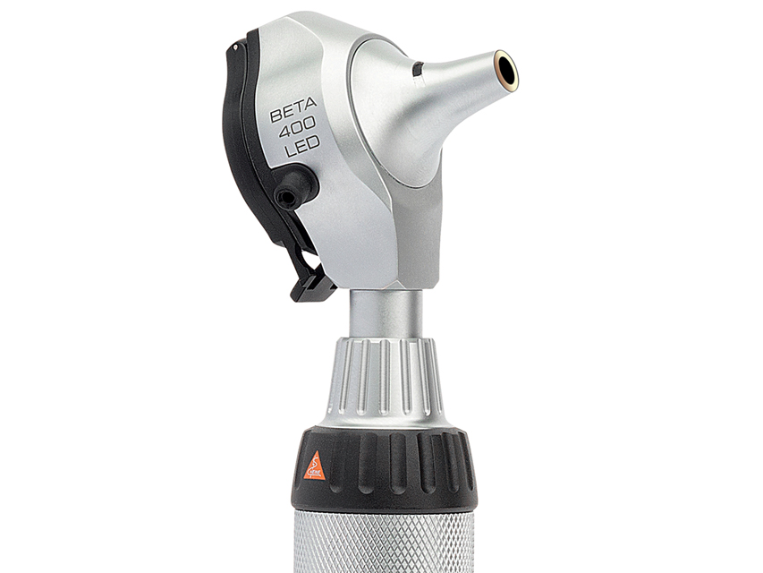 HEINE BETA 400 LED FO OTOSKOPS. B-143.24.420. Ekskluzīvs 4,2X palielinājums. LED HQ ar nepārtrauktu spilgtuma kontroli. Pilnmetāla korpuss un skrāpējumiem izturīgas stikla lēcas. Krāsu temperatūra: 3500 K. Krāsu atveidošanas indekss (CRI) >97. Izcils lauka dziļums nodrošina asu telpisku attēlu. LED otoskops ar uzlādējamu rokturi, kas ir aprīkots ar 4 atkārtoti lietojamiem ausu uzgaļiem un 5 vienreizlietojamiem All Spec ausu uzgaļiem 2,5 un 4 mm Ø, zibspuldzes korpusā ar NT4 galda lādētāju (34374).