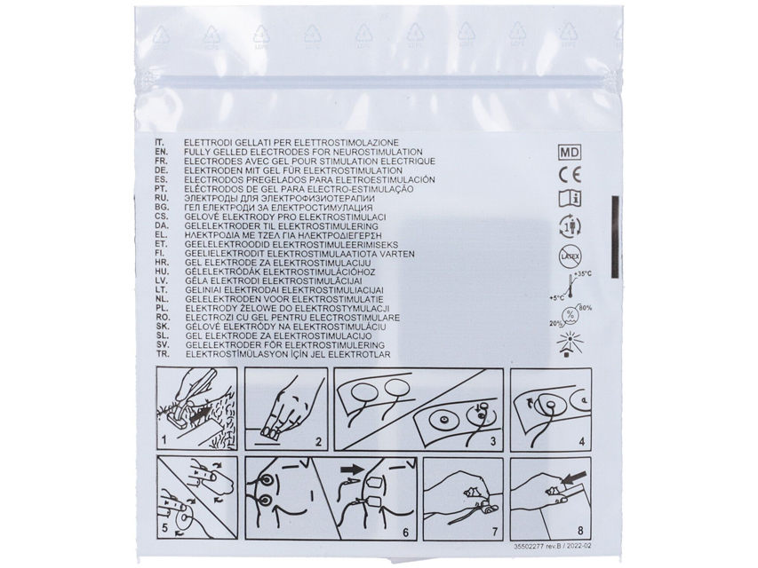 Vienreizlietojami elektrodi ar gēla pārklājumu ar kabeli, bez lateksa.Materiāla augstā elastība ļauj viegli piemērot elektrodus apstrādājamām vietām.Cietais gēls uztur procedūras laikā adhēziju un vadāmību bez izmaiņām.Elektrodi aprīkoti ar 10 cm garu kabeli un 2 mm rozeti.